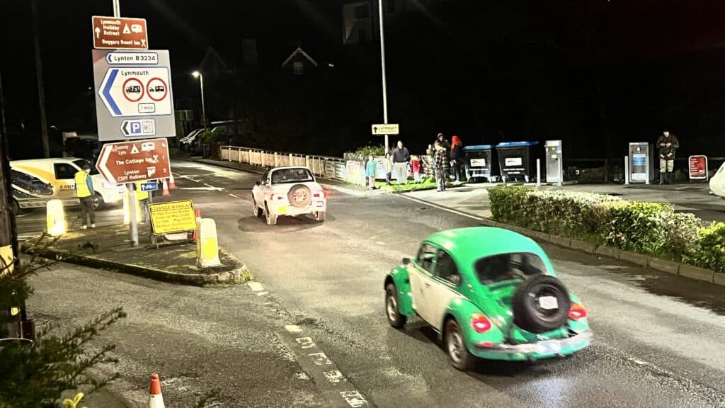From Felons Oak, the route climbs steadily into Exmoor, over Porlock Hill, which was once a section but is now tarmac, threading through villages where quiet zones demand restraint and respect, before opening out onto the moor itself. The darkness, the isolation, and the rhythm of the road begin to settle the car and crew into something approaching flow, but the trial has a habit of interrupting that just as it becomes comfortable.